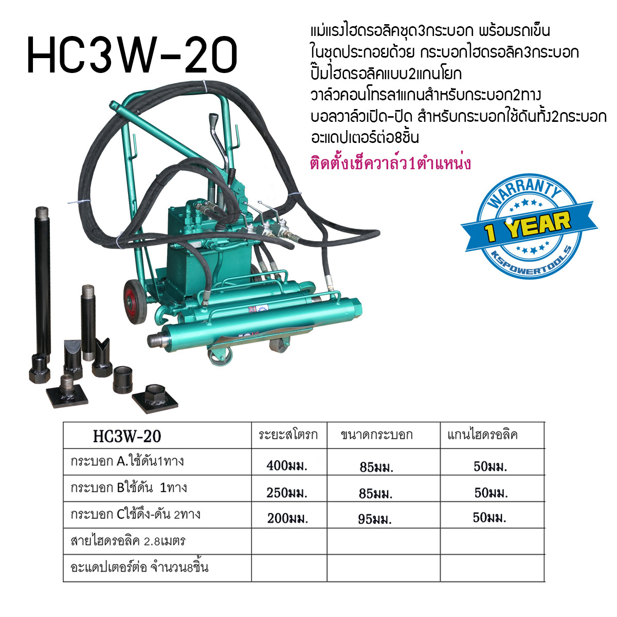 .แม่แรงไฮดรอลิค รุ่นสามกระบอก 1กระบอกสามารถดัง-ดันได้